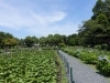 菖蒲田では、ハナショウブを囲むように咲く紫陽花や、公園の緑の借景とのコラボも楽しめます。