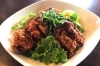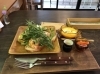 お店自慢のブリュレフレンチトースト。ワンプレートにフレンチトースト、こだわりのオーガニック野菜を使用した新鮮なサラダが乗り、ドリンクがついてくる。フレンチトーストというと甘いイメージが先行しがちだが、そこはお店の看板メニュー。カソナードという赤砂糖をまぶしてカリカリに焼いたトーストに、肉汁たっぷりのソーセージが乗り、マスタードで甘さとしょっぱさが絶妙に絡み合うのがもう最高!ボリュームもあるのでランチにピッタリ。