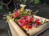 花手水の花は、ツツジやユリ、アジサイなど、ご自宅の庭に咲く季節の花々や、教室の生徒さんが持ち寄った花を飾っているそうです。